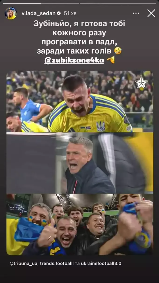 Не осталась в стороне и Влада Зинченко – жена футболиста «Ноттингем Форест» и сборной Украины Александра Зинченко. В соцсетях она эмоционально отреагировала на гол Александра Зубкова.