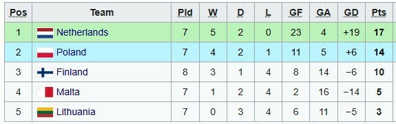 Разница мячей делают такую задачу для Польши практически фантастической. Имея большой запас, Нидерланды легко выполнят задачу выхода на ЧМ в игре с Литвой, а команде Польши придется играть матчи плей-офф, где она имеет шансы быть сеяной з первой корзины вместе с Украиной.