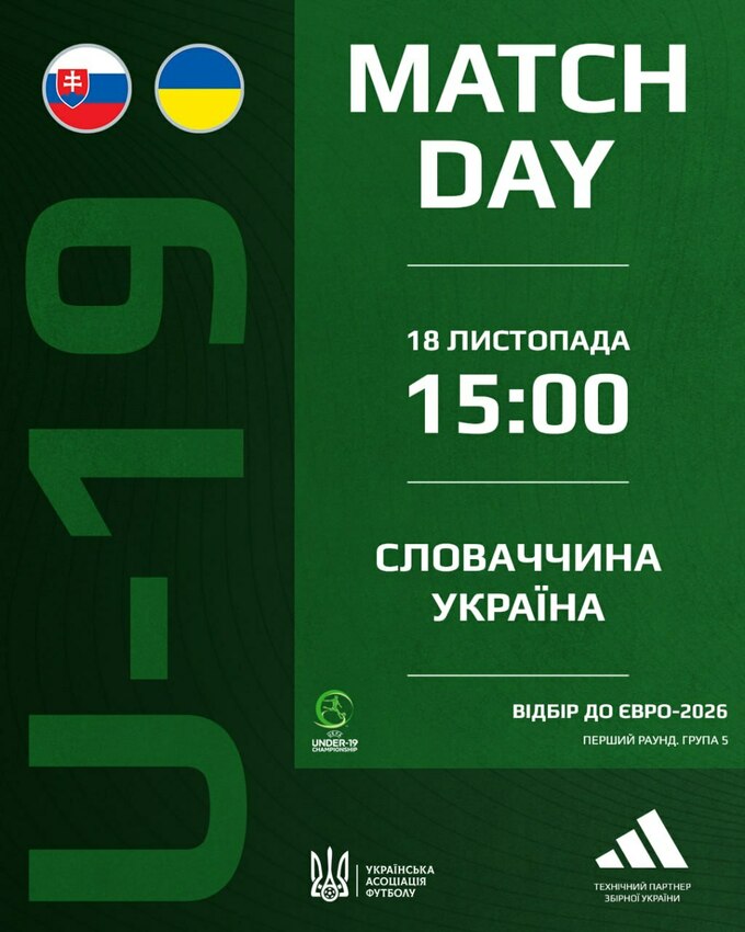 Юношеская сборная Украины U-19 (игроки 2007 г. р. и мл.) проводит матч 3-го тура квалификации чемпионата Европы 2026 U-19.