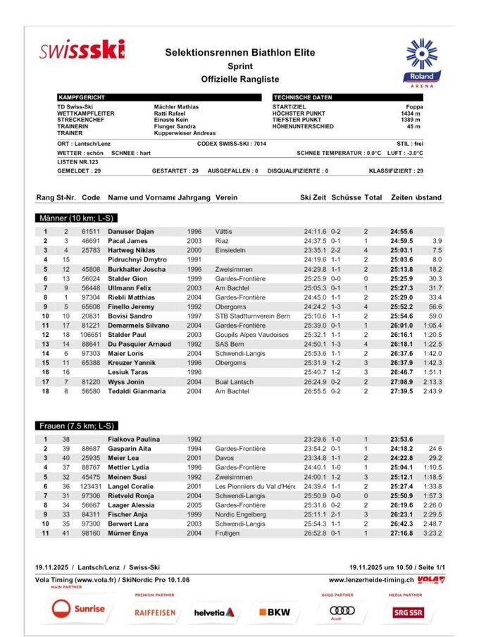 19 ноября два украинских биатлониста, Дмитрий Пидручный и Тарас Лесюк, приняли участие в швейцарской Элитной отборочной гонке.