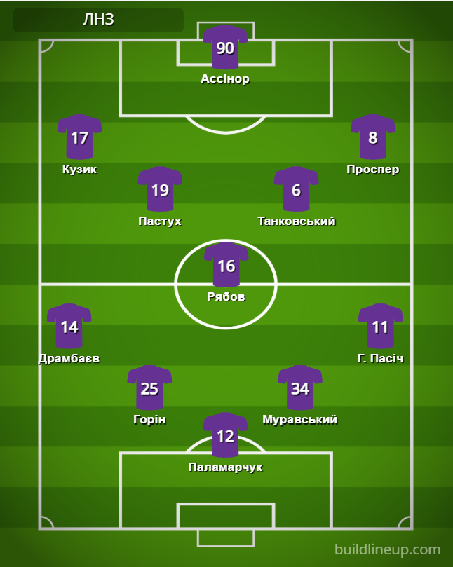 ЛНЗ: Паламарчук – Драмбаев, Горин, Муравский, Г. Пасич – Пастух (Ноникашвили, 69), Рябов, Танковский (Яшари, 53) – Кузык, Ассинор (Кравчук, 69), Проспер (Подоляк, 89).