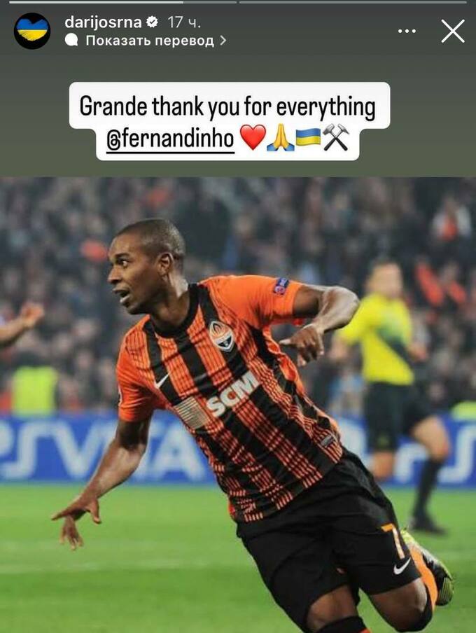 Легендарный капитан донецкого Шахтера Дарио Срна отреагировал на решение бывшей звезды «горняков» Фернандиньо объявить о завершении профессиональной карьеры.