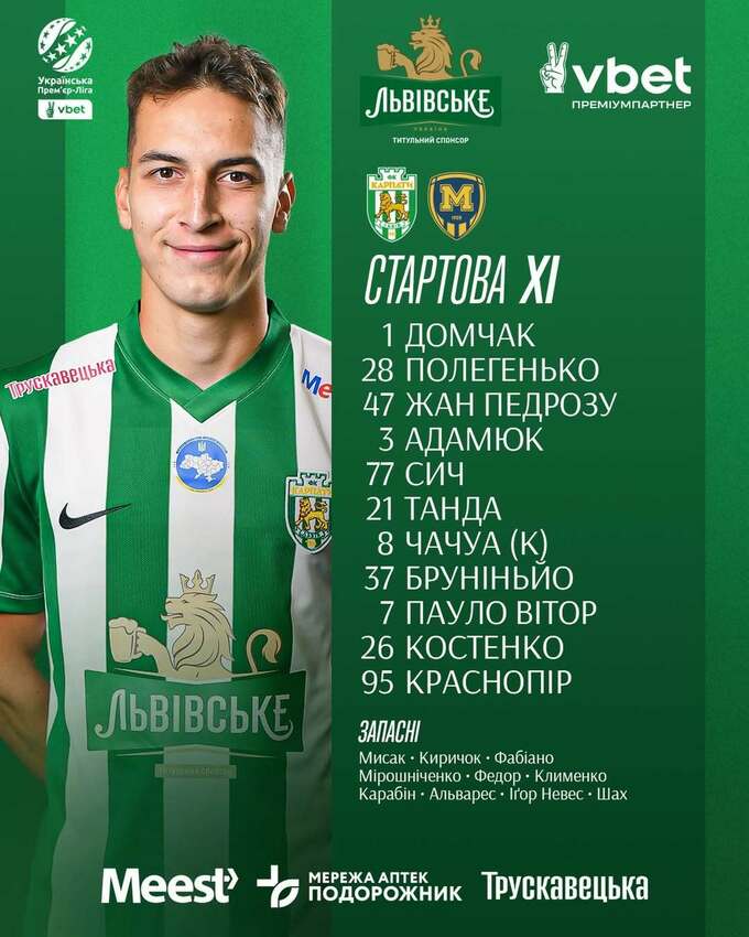 Карпаты: Домчак, Полегенько, Педросо, Адамюк, Сыч, Танда, Чачуа, Бруниньо, Пауло Виктор, Костенко, Краснопир