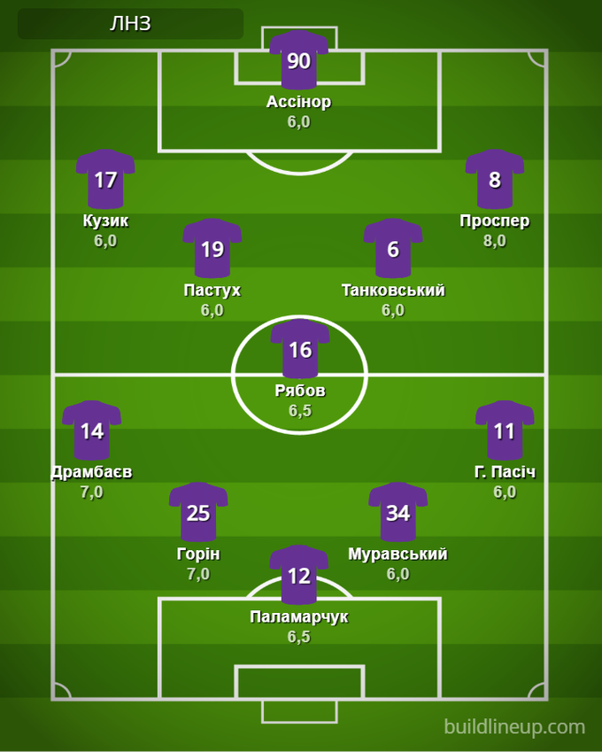 ЛНЗ (замены): Яшари – 6,0, Ноникашвили – 6,0, Кравчук – 6,0, Подоляк – б/о.