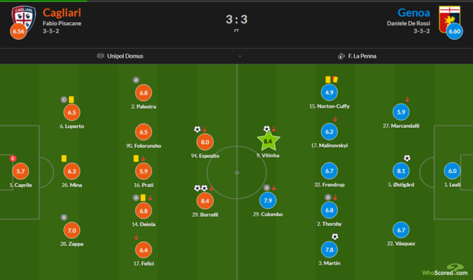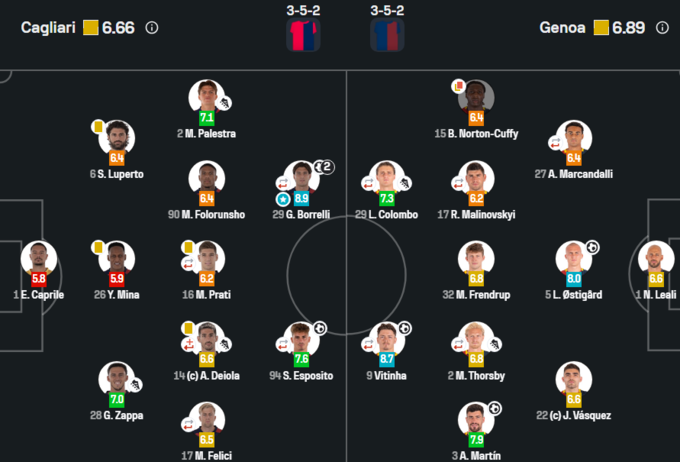 Стала известна оценка украинского полузащитника «Дженоа» Руслана Малиновского за матч с «Кальяри».