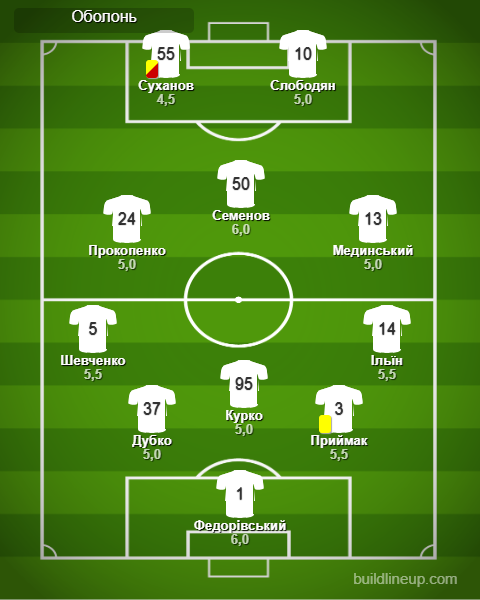 «Оболонь»: Федоривский – Шевченко, Дубко, Курко (Чех, 72), Приймак, Ильин (Пасич, 85) – Прокопенко (Бычек, 72), Семенов (Черненко, 85), Мединский (Устименко, 61) – Суханов, Слободян
