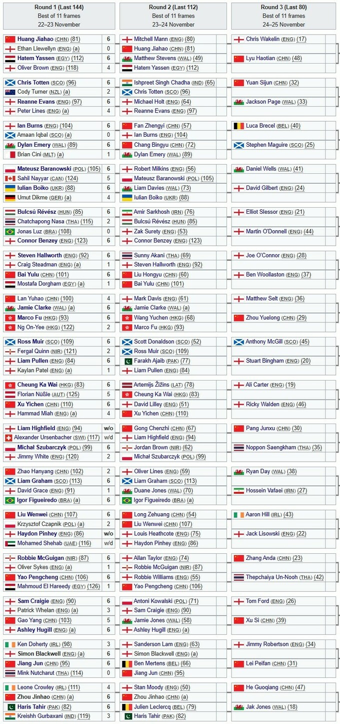 Квалификация проходит с 22 по 27 ноября в английском Уигане, а рейтинговый турнир состоится в английском Йорке с 29 ноября до 7 декабря.