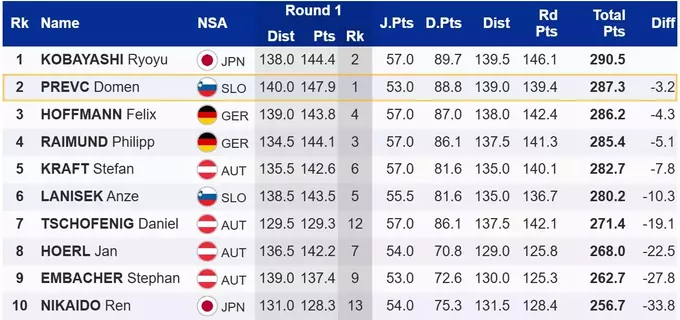 Словенец Домен Превц был близок к триумфу, однако потерял позицию после второй попытки и уступил 3.2 пункта. Немец Феликс Хоффманн впервые оказался на подиуме, замкнув тройку лидеров.