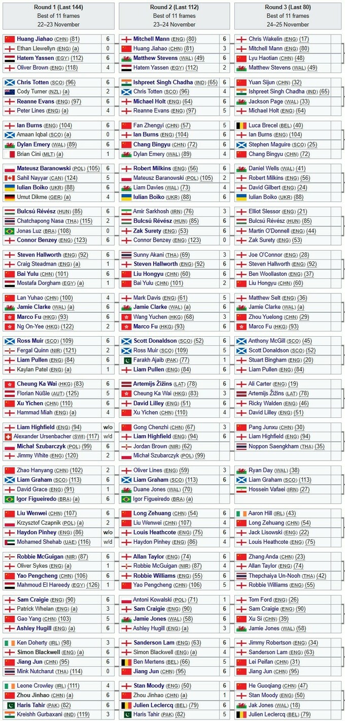 Квалификация проходит с 22 по 27 ноября в английском Уигане, а рейтинговый турнир состоится в английском Йорке с 29 ноября до 7 декабря.