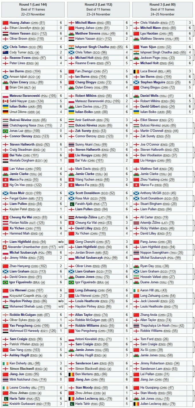 Квалификация проходит с 22 по 27 ноября в английском Уигане, а рейтинговый турнир состоится в английском Йорке с 29 ноября до 7 декабря.