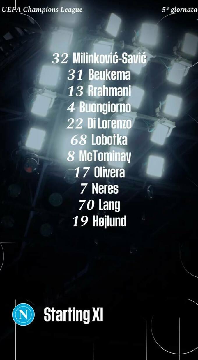 Стартовые составы команд на матч «Наполи» – «Карабах»