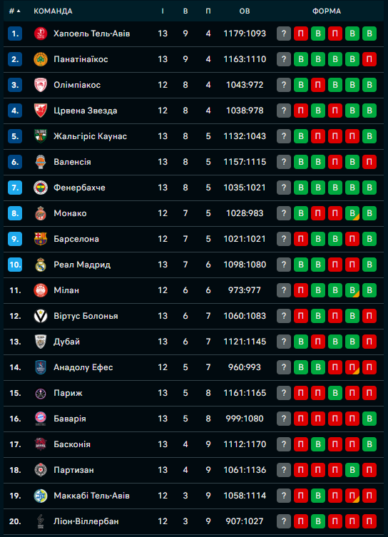 25 ноября шестью матчами стартовал 13-й тур регулярного чемпионата Евролиги.
