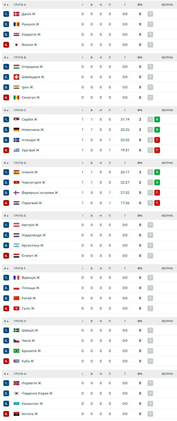 - Сербия – Уругвай – 31:19 (15:10)