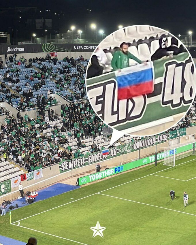 ФОТО. Провокация? Киприоты вывесили флаг россии на матче с Динамо