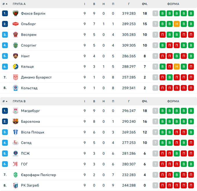 В гандбольной Лиге чемпионов состоялись поединки девятого тура. Фюхсе Берлин и Магдебург продолжают идти без поражений.