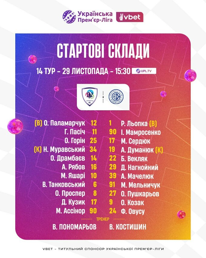 В матче 14-го тура Украинской Премьер-лиги 2025/26, который состоится 29 ноября, сыграют черкасский ЛНЗ и «Кудровка».