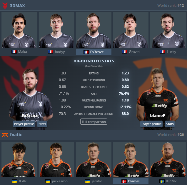 fnatic сейчас занимают 26-е место мирового рейтинга HLTV, тогда как их соперник 3DMAX располагается значительно выше – на 12-й позиции.