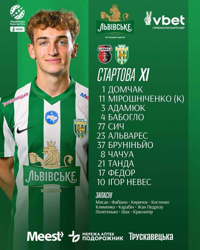 Верес и Карпаты выбрали стартовые составы на матч Премьер-лиги