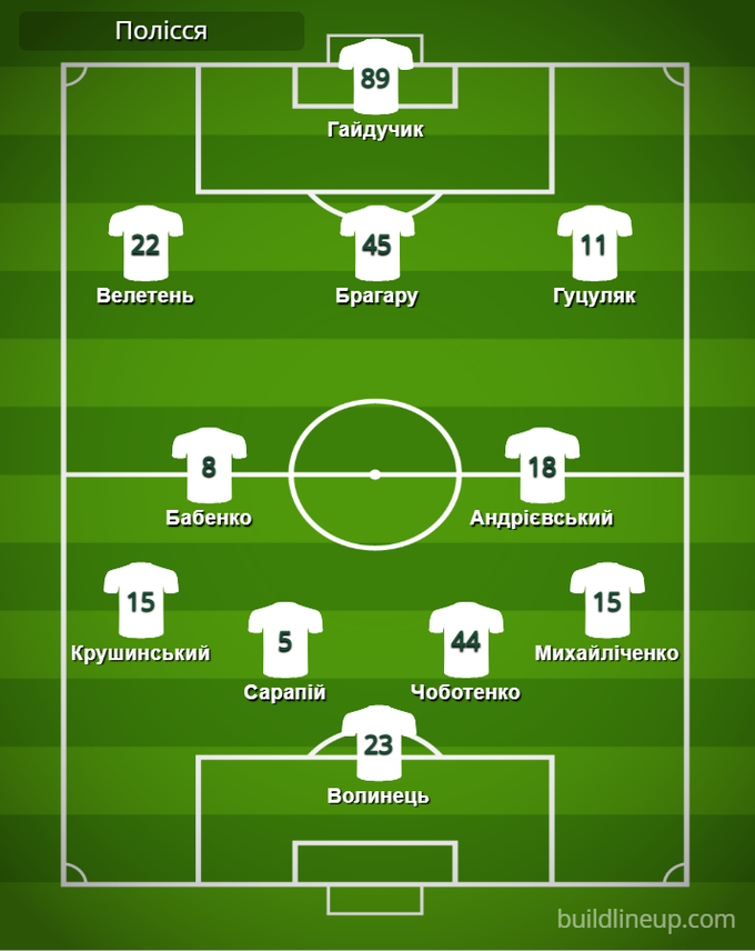 «Полесье»: Волынец – Крушинский, Сарапий, Чоботенко, Михайличенко – Бабенко, Андриевский (Борел, 65) – Велетень (Назаренко, 65), Брагару (Йосефи, 76), Гуцуляк (Бескоровайный, 85) – Гайдучик (Филиппов, 76).