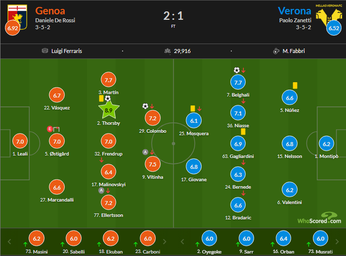 Оценки WhoScored за матч Дженоа – Верона (2:1)