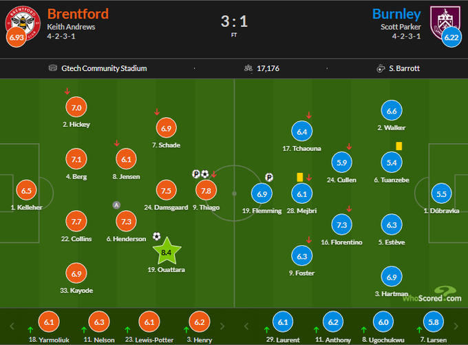 Оценки WhoScored за матч Брентфорд – Бернли (4:1)