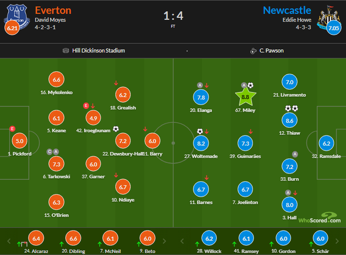 Оценки WhoScored за матч Эвертон – Ньюкасл (1:4)
