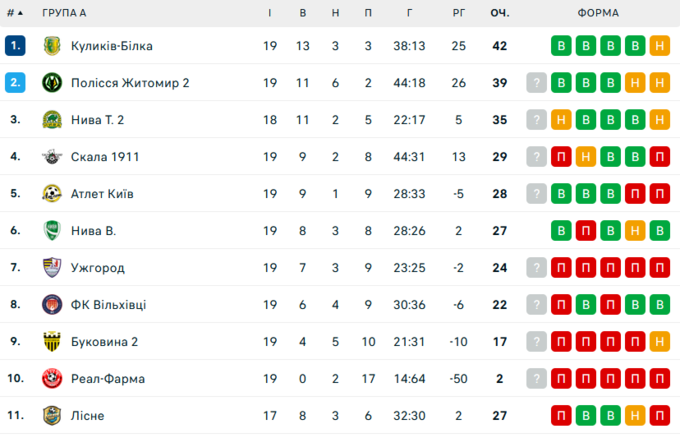 В группе А «Куликов-Белка» на своем поле со счетом 3:0 обыграл «Скалу 1911». Команда набрала 42 очка и завершила первую часть чемпионата лидером.