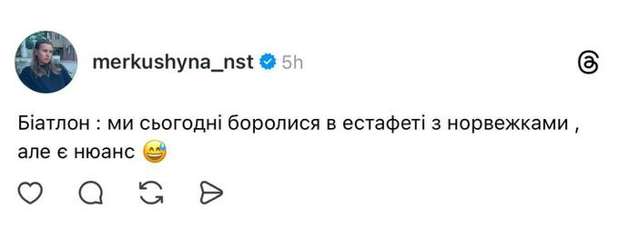 Опытная украинская биатлонистка Анастасия Меркушина в социальной сети отреагировала на результат сборной Украины в женской эстафете первого этапа Кубка мира.