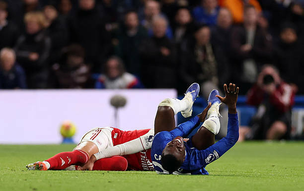 Челси в меньшинстве. Кайседо удален за жесткий фол, при этом получил травму