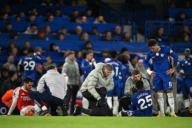 Хавбек Челси ударил по ноге полузащитника Арсенала Микеля Мерино