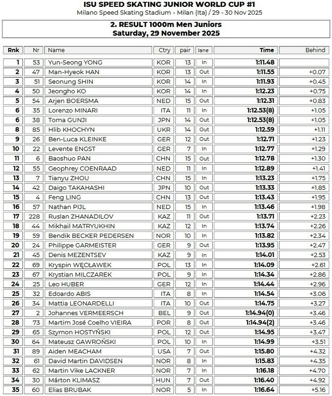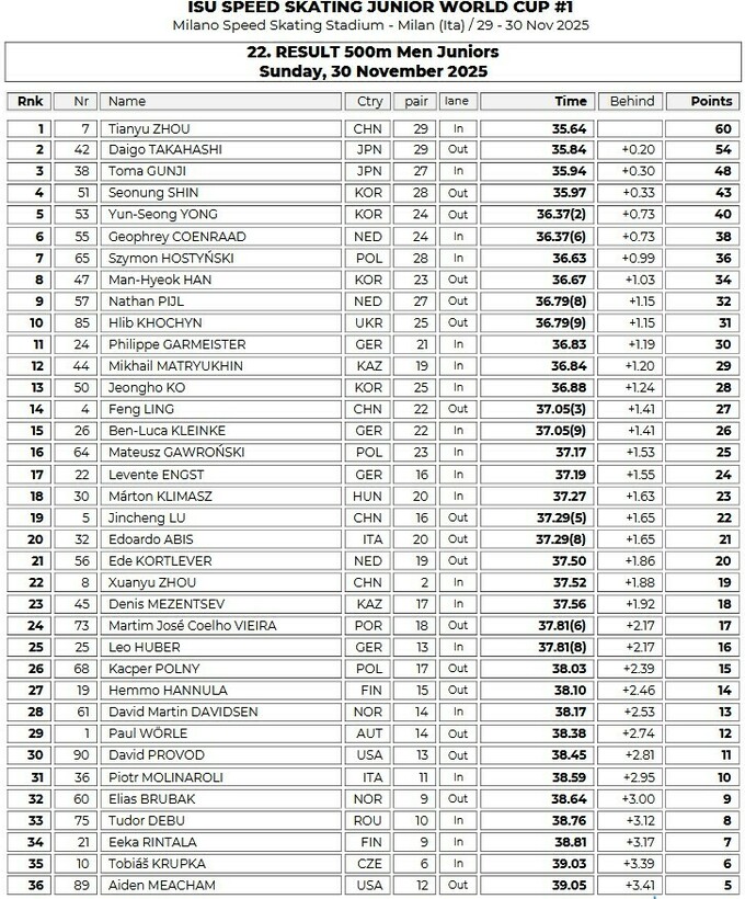 Украинский конькобежец Глеб Хочин уверенно начал сезон 2025/26 в юниорском Кубке мира по конькобежному спорту, который на выходных прошел в итальянском Милане.