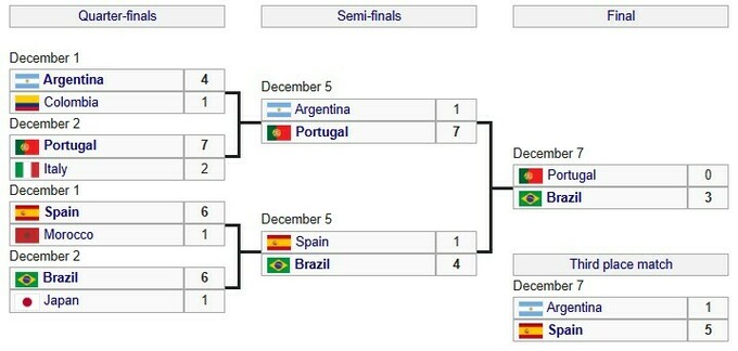 В финале Бразилия обыграла Португалию, а за бронзу Испания одолела Аргентину