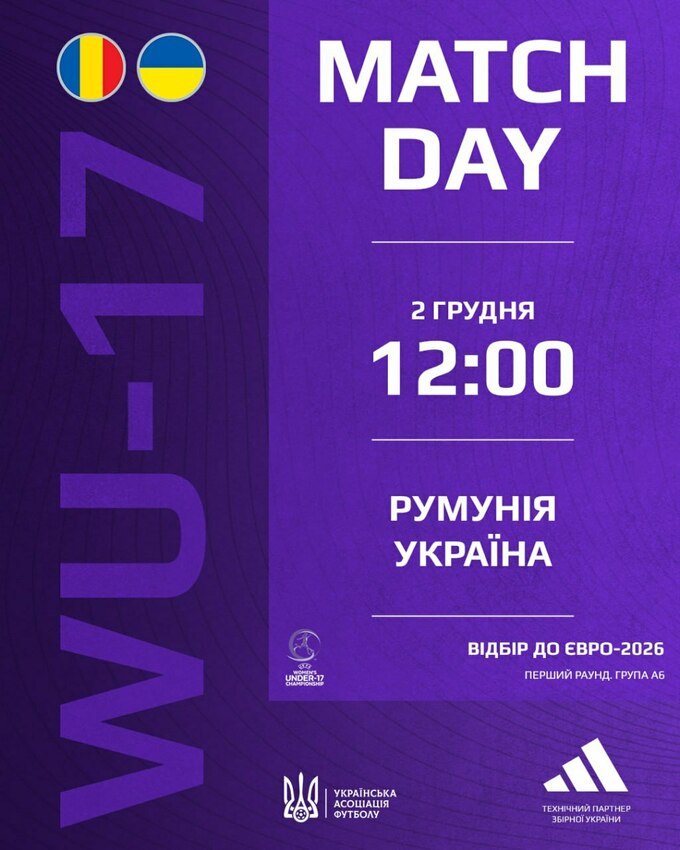Девичья сборная Украины WU-17 проводит матч 3-го тура первого раунда квалификации чемпионата Европы 2026 WU-17 по футболу.