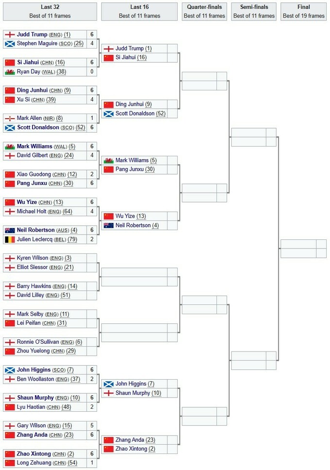 - Марк Аллен (Северная Ирландия) – Скотт Дональдсон (Шотландия) – 1:6