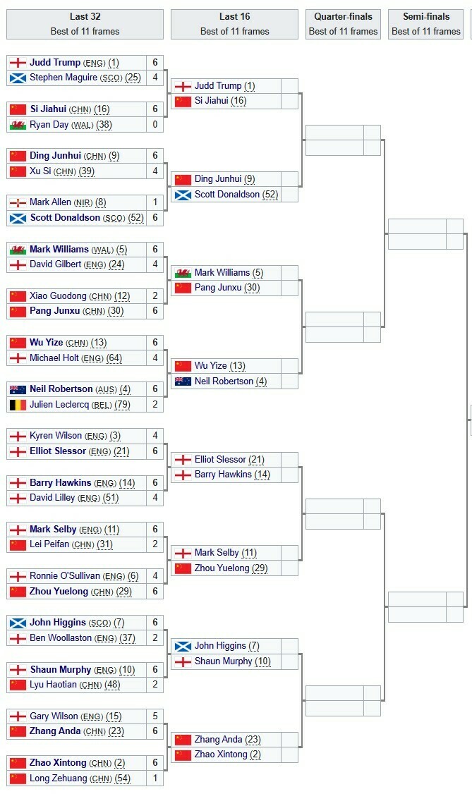 - Кайрен Уилсон (Англия) – Эллиотт Слессор (Англия) – 4:6