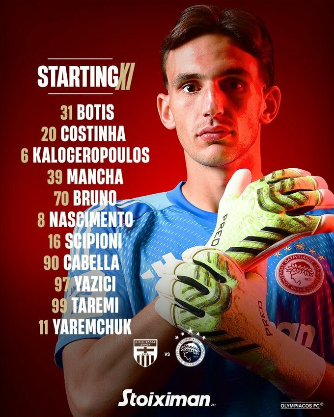 Стартовые составы на матч Олимпиакос – Эллас Сиру