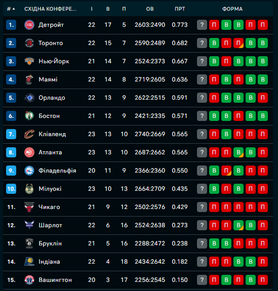 Лидер Востока «Детройт» играл в гостях с «Милуоки» и потерпел неожиданное поражение. «Пистонс» начали матч с рывка 27:9, но после этого «Бакс» постепенно отыграли свое отставание и по ходу третьей четверти вышли вперед – 56:55. Потом они снова отпустили соперника на дистанцию в 10 очков (73:83) и снова отыгрались, а судьба встречи решилась в клатче, где решающими стали трехочковый Грина и энд-ван Симса. В итоге победа «Милуоки» со счетом 113:109.