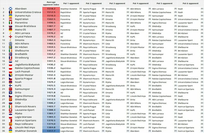 Аналитики Football Meets Data поделились своими взглядами на календарь команд в текущем розыгрыше Лиги конференций на основе составленного ими среднего индекса оппонентов.