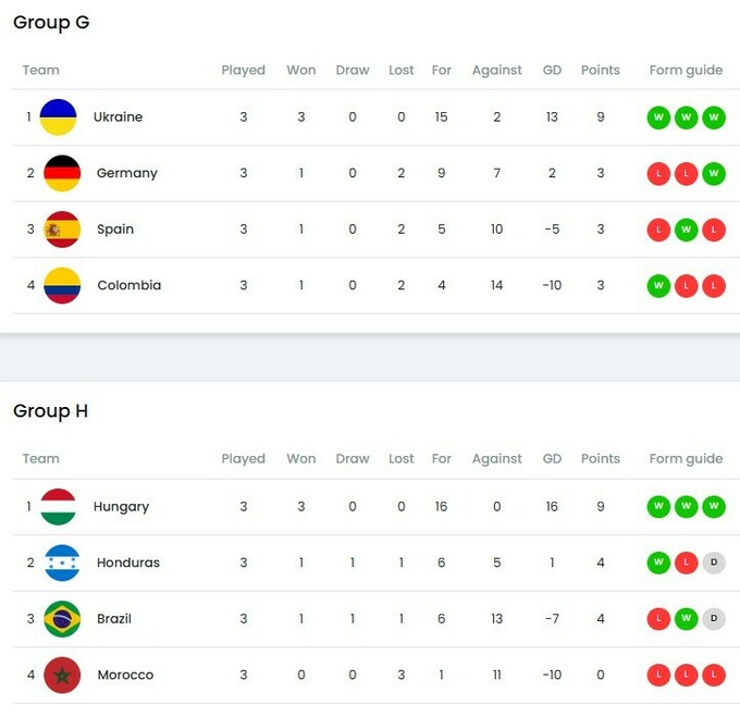 Ранее в первом туре Украина обыграла Германию (3:0), Колумбию (6:1) и Испанию (6:1). Сине-желтые набрали 9 очков из 9 возможных и заняли первое место в группе G.