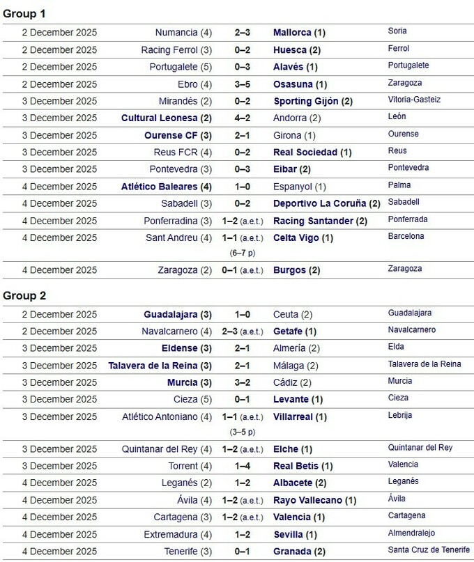 Вечером 4 декабря состоялись матчи 1/32 финала Копа дель Рей