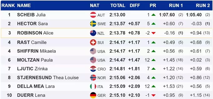 Вторую победу в текущем сезоне оформила австрийская спортсменка Юлия Шайб, которая поднялась на одну позицию по сумме двух попыток.