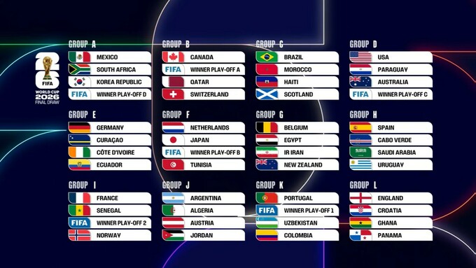 5 декабря в 19:00 в Kennedy Center в Вашингтоне состоялась жеребьевка финального раунда чемпионата мира 2026 по футболу.