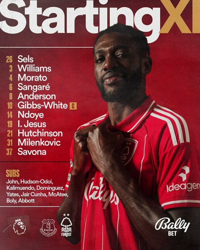 Стартовые составы команд на матч «Эвертон» – «Ноттингем Форест»
