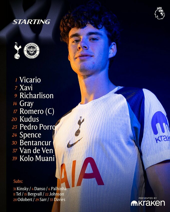Стартовые составы матча Премьер-лиги Тоттенхэм – Брентфорд