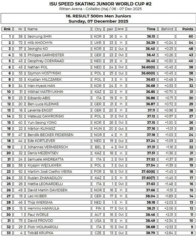 Украинский конькобежец Глеб Хочин вошел в историю на втором этапе юниорского Кубка мира 2025/26 по конькобежному спорту, который в эти выходные проходит в итальянском Коллайбо.