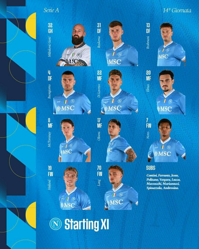 Обе команды объявили стартовые составы на поединок. Местом проведения встречи станет «Стадио Диего Армандо Марадона» в Неаполе.
