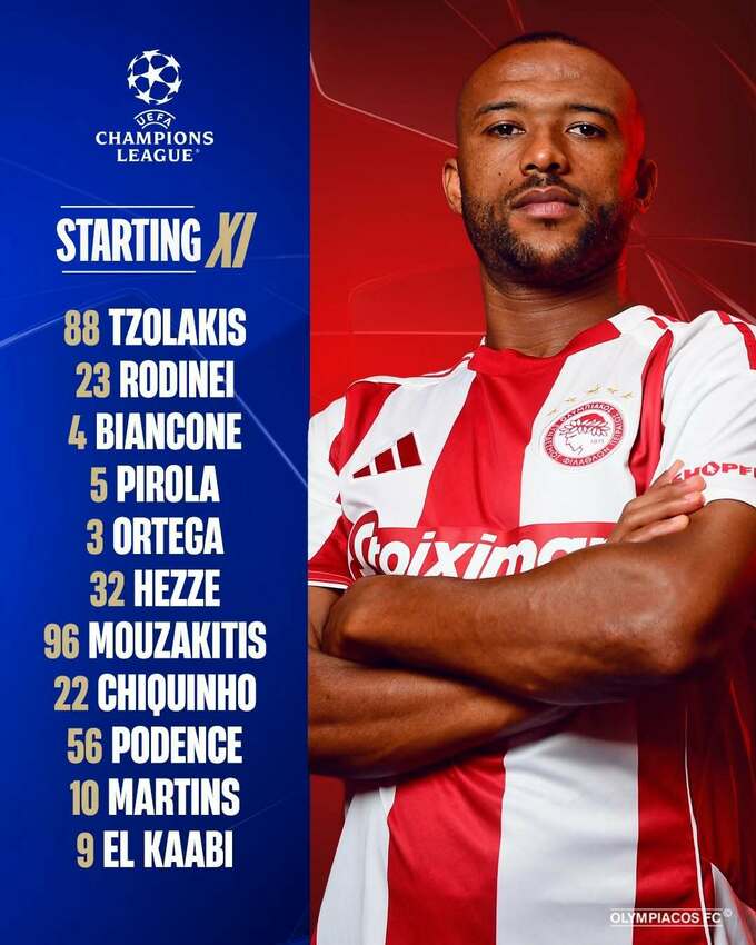 Украинский форвард Олимпиакоса Роман Яремчук остался в резерве команды на матч шестого тура Лиги чемпионов 2025/26 против команды Кайрат Алматы.