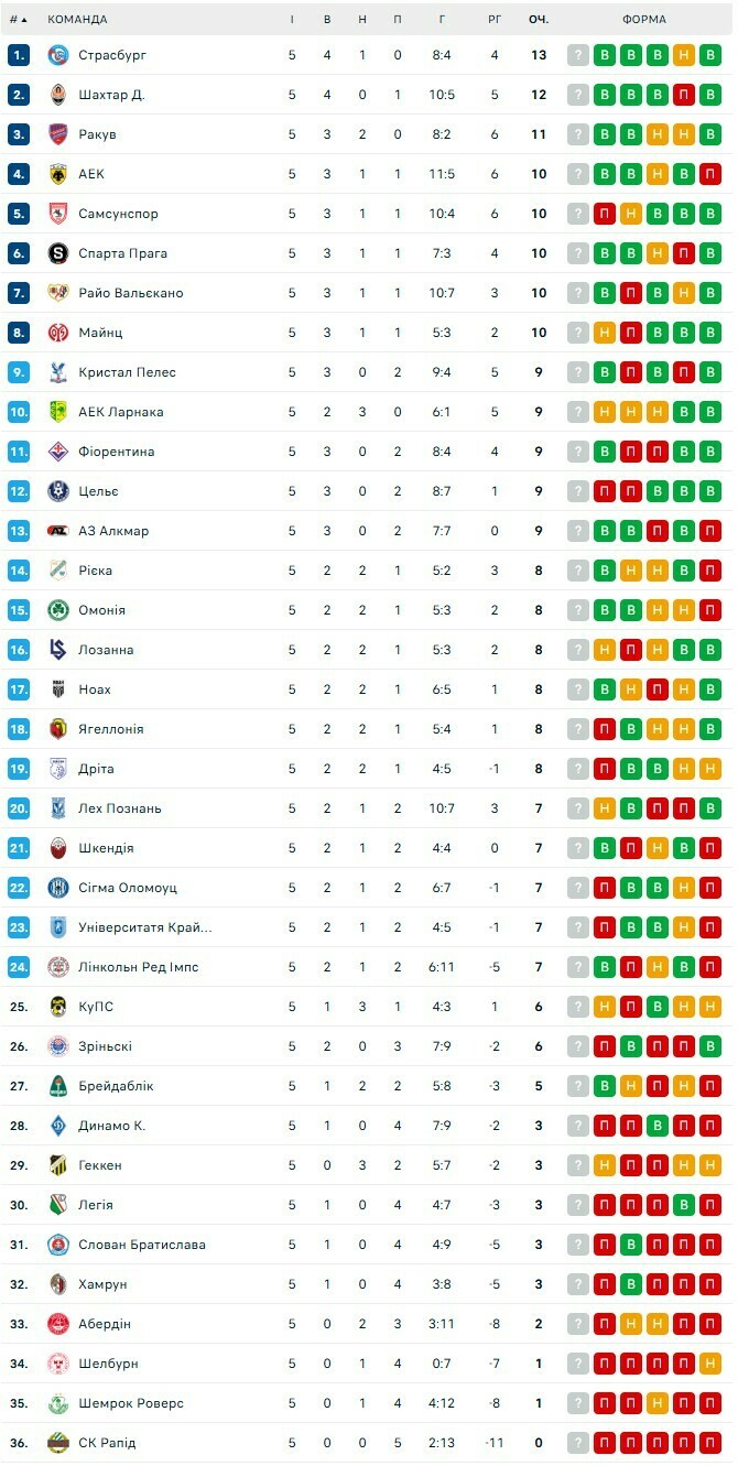 Таблица Лиги конференций. Шахтер идет вторым, Динамо выбыло из еврокубков