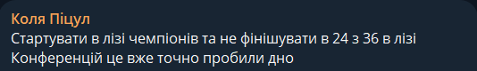 Коля Піцул: Стартовать в Лиге чемпионов и не финишировать в 24 из 36 в Лиге конференций – это уж точно пробили дно.