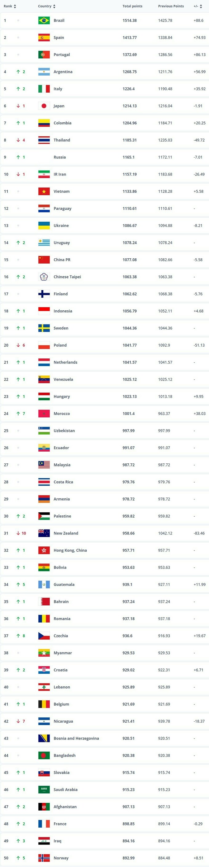 Национальная сборная Украины по футзалу поднялась на одну позицию в рейтинге ФИФА.